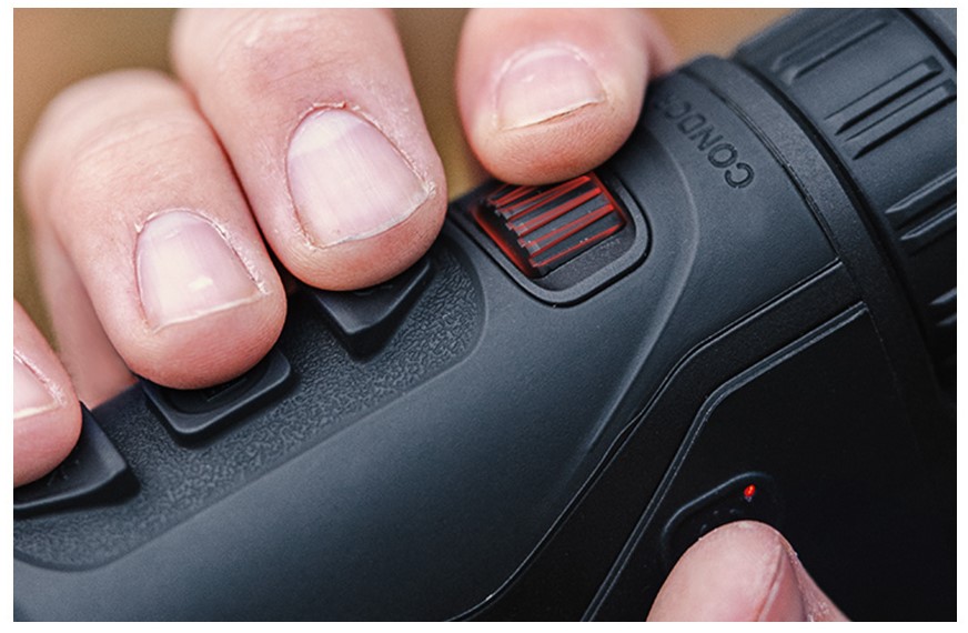 Zadní zaostřovací kolečko na špičce prstu, ovládněte svůj pohled Zaostření na termomonokulár CONDOR 2.0 lze snadno provést prstem. Díky zadnímu zaostřovacímu kolečku na dosah mohou lovci během pozorování rychle upravit zaostření a přepínat mezi blízkými a vzdálenými zvířaty. Jste pánem svého termálního pohledu. | ![]() |