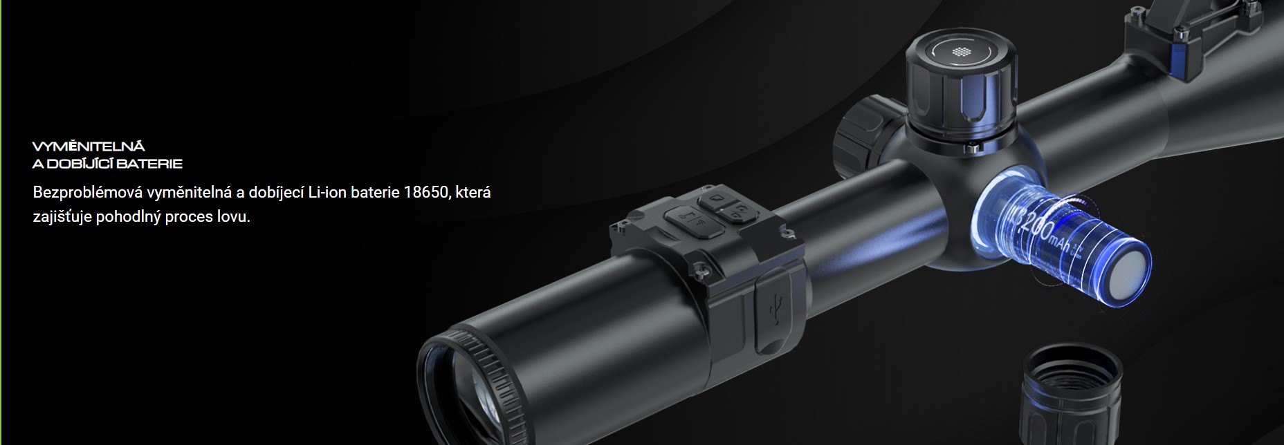 Puškohled je odolný díky stupni ochrany IP67 (ochrana proti ponoření do vody, ponoření na 30 minut do hloubky 1 metr). O napájení se stará dobíjecí baterie 18650 s výdrží 6 hodin. Díky režimu spánku šetří baterii a má možnost připojení powerbanky.